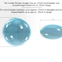 Die Abmessung dieses Messers ist ideal für runden Formen (Kugeln) bis ca. 17 mm Durchmesser und olivenförmigen Perlen bis ca. 15 mm Länge.