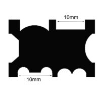 Die Schienen sind 95 mm lang, alle formen sind 10 mm breit und ca. 3,5 mm tief.