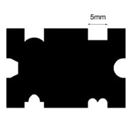 Die Schienen sind 95 mm lang, alle formen sind 5 mm breit und ca. 3,5 mm tief.